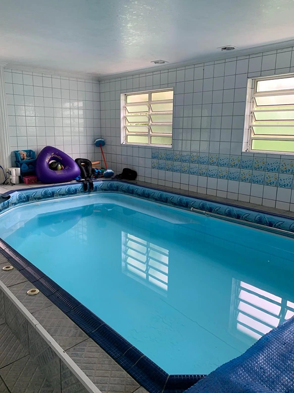 Piscina aquecida supervisionada por fisioterapeutas. Exercícios aquáticos para mobilidade reduzida com segurança